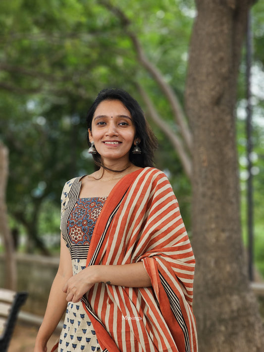 Bhumi - Handloom Cotton x Ajrakh A-line Kurta and Dupatta Set