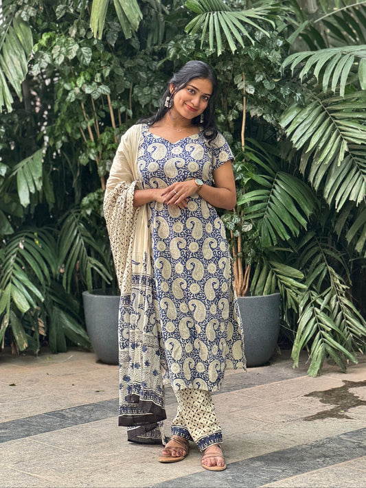 Niharika Indigo - Handblock Printed Kurta Set with Indigo Kota Dupatta