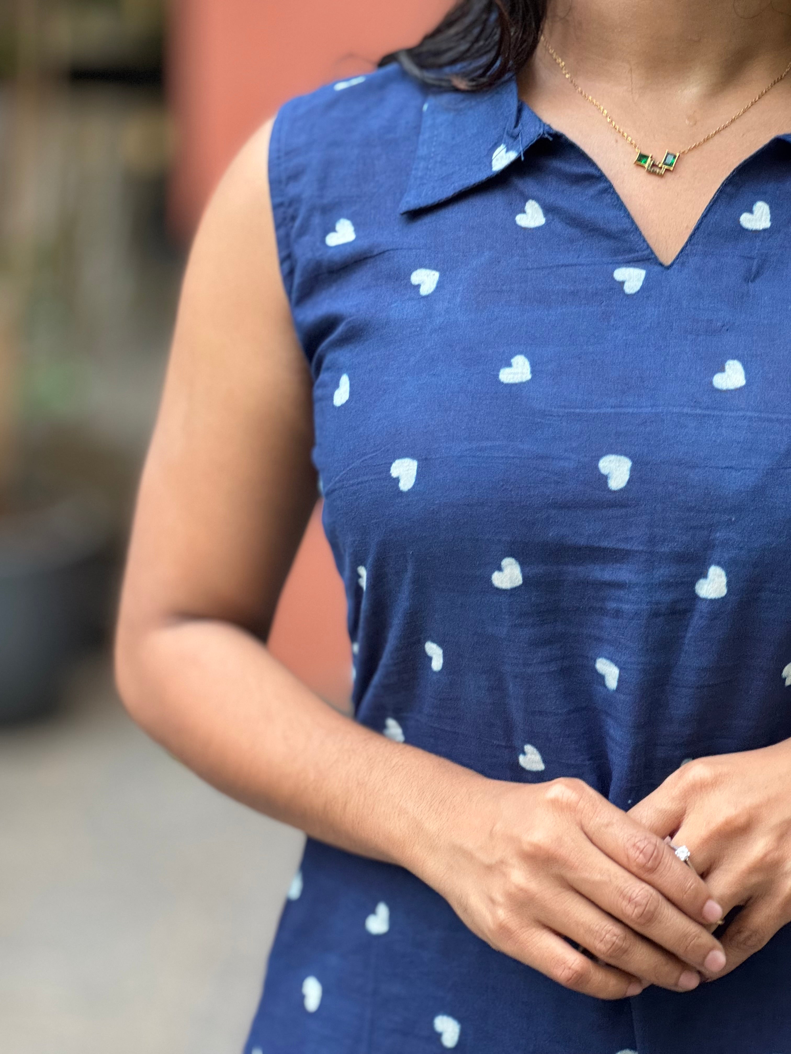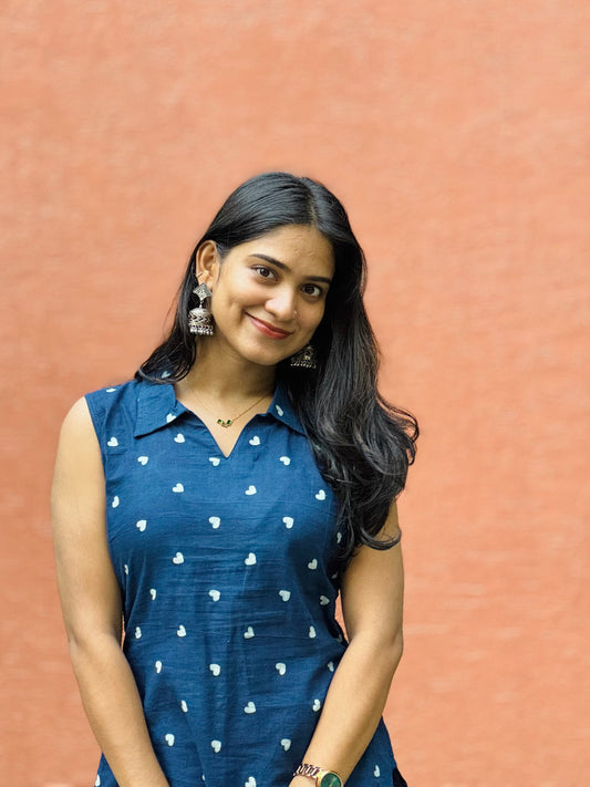 Indigo Hearts - Handblock Printed Natural Dyed Kurta
