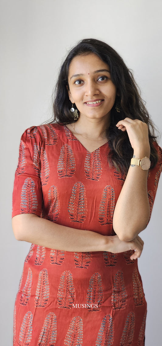 Shree - Ajrakh Handblock Printed Fusion A-Line Kurta (Express)