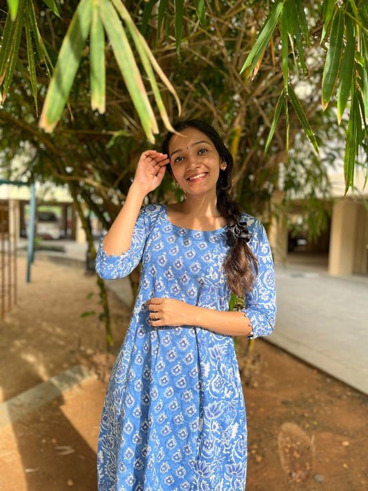 Shravya - Sanganeri Handblock Printed Cotton Kurta Set