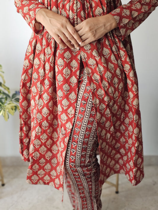 Blossom - Sanganeri Handblock Printed Anarkali Panel Kurta (Express)