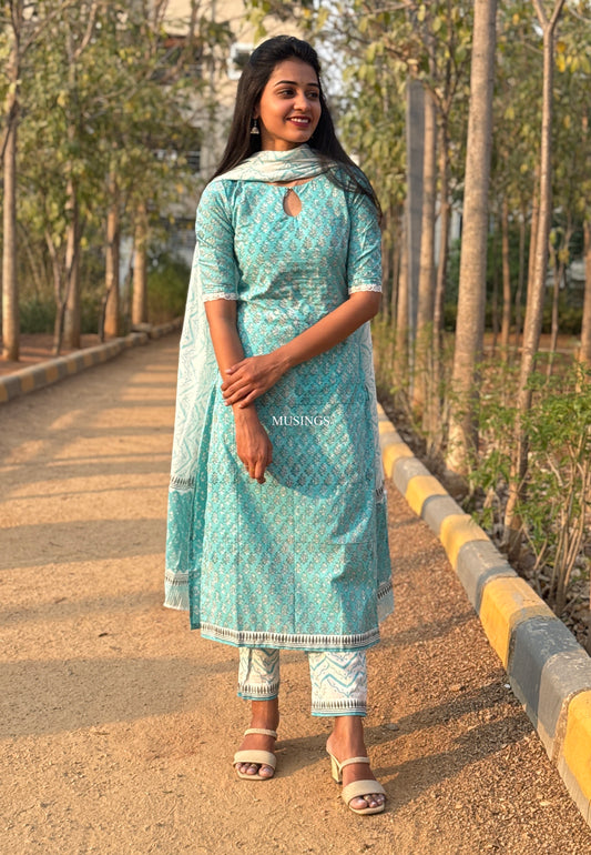 Shravya - Sanganeri Handblock Printed Cotton Kurta Set