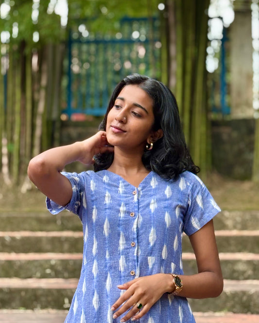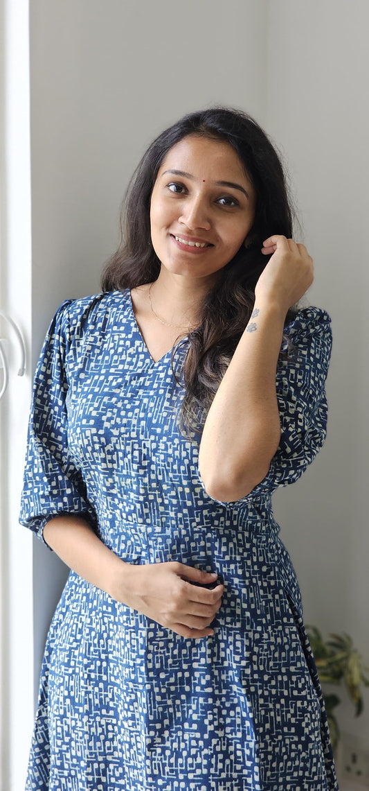 Indigo Charm - Handblock Printed A line Dress