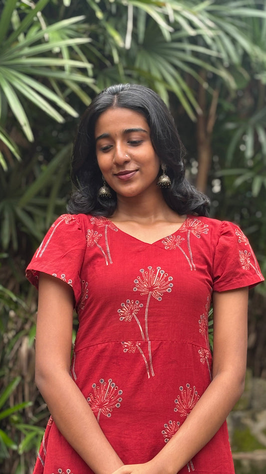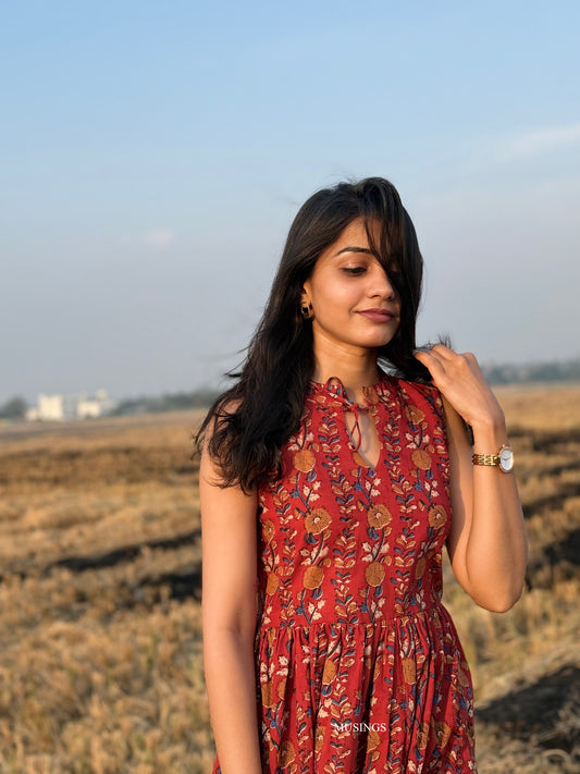 Red Bloom - Ajrakh Handblock Printed Dress