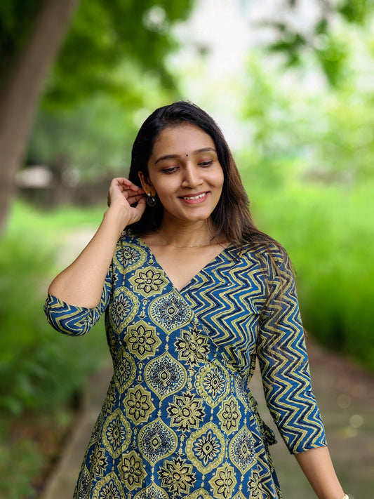 Daksha - Ajrakh Handblock Printed Wrap Dress
