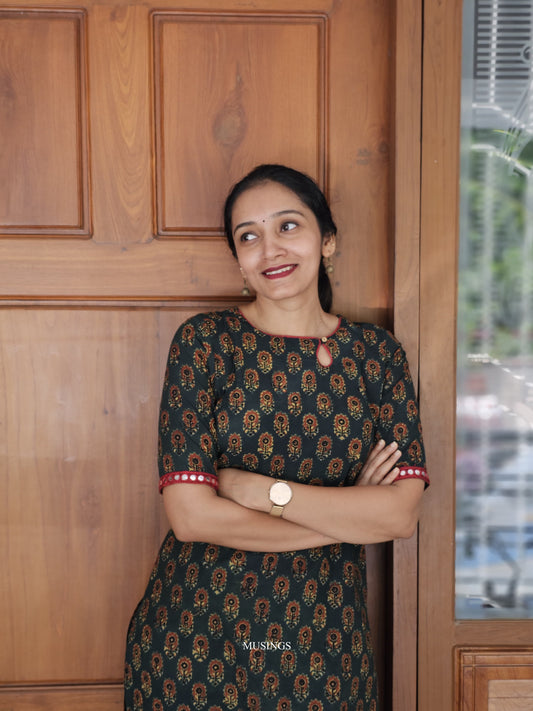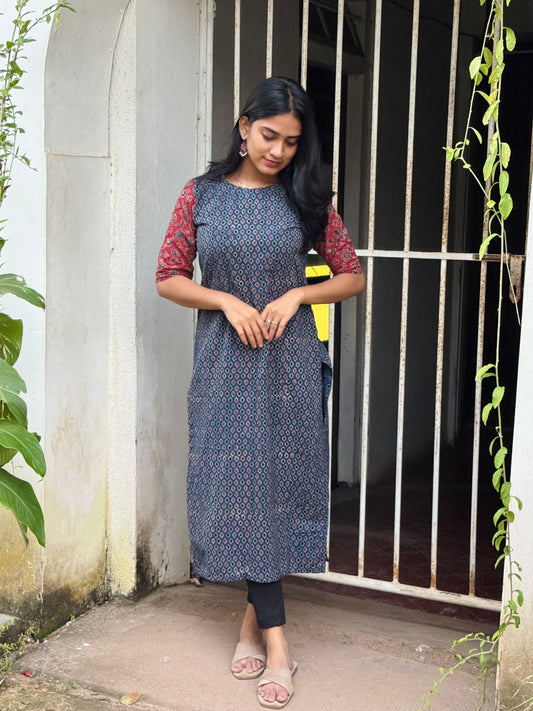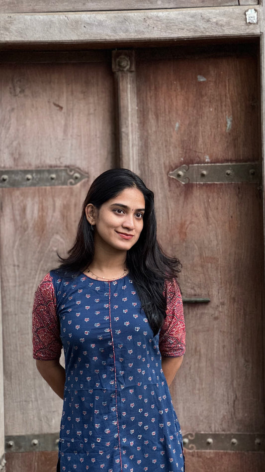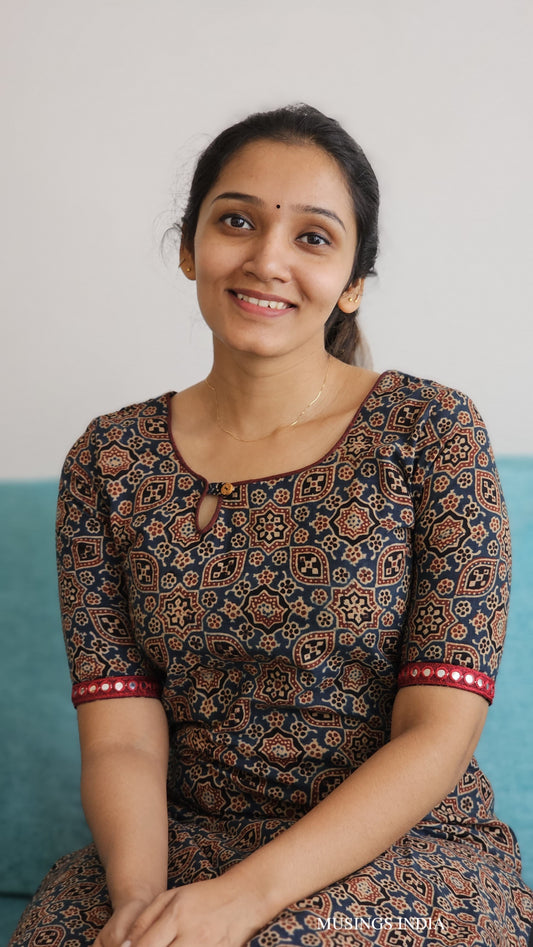 Anika - Mangalgiri x Ajrakh Kantha Fusion Kurta