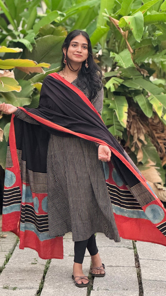 Aarohi - Ajrakh Handblock Printed Striped Kurta
