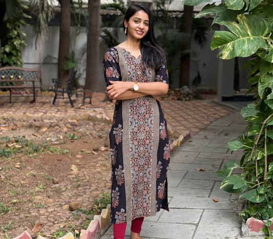 Zara - Ajrakh Handblock Printed Fusion Kurta