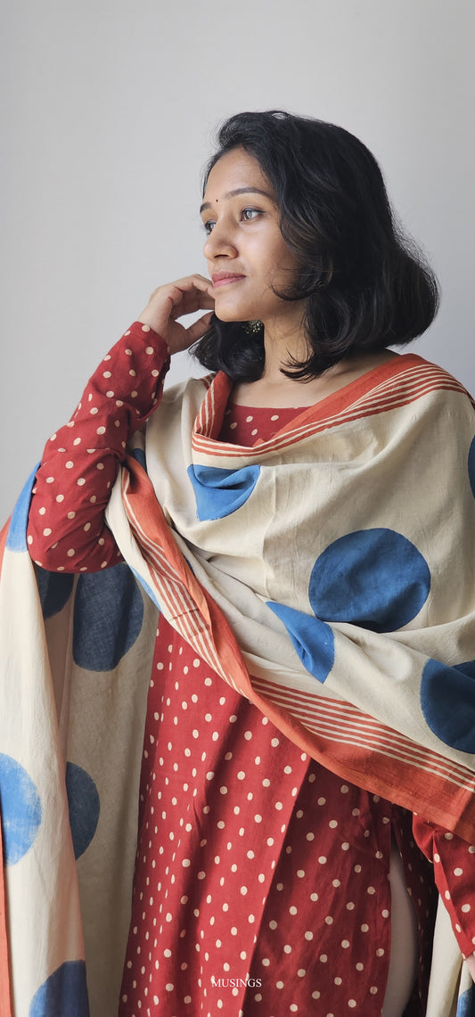 Indira - Polka Dots Ajrakh Handblock Printed Kurta with Ajrakh Dupatta set