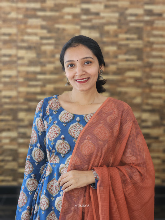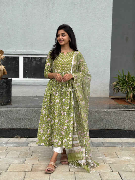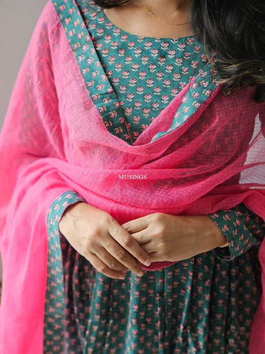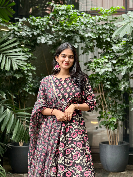 Ameira - Sanganeri Block Print Anarkali Kurta with Kota Dupatta