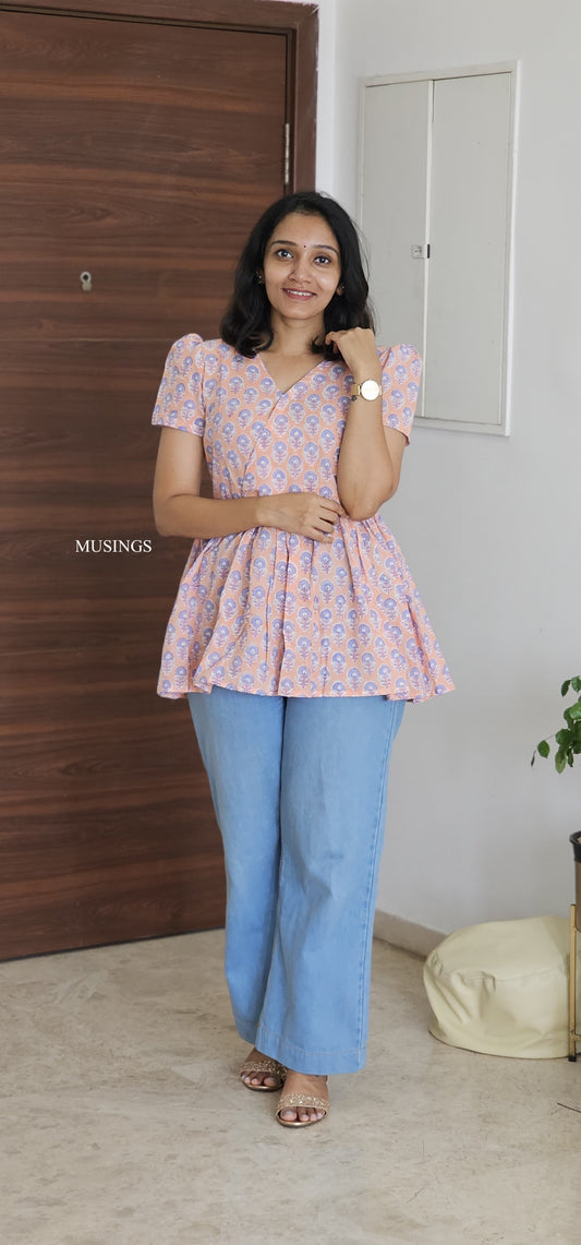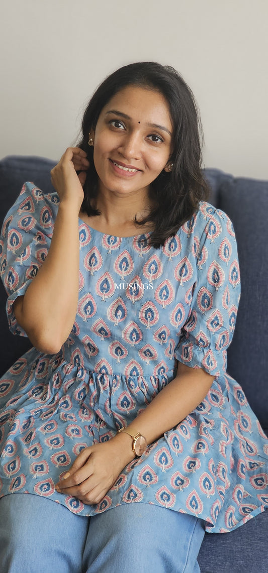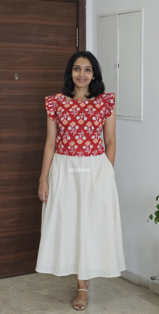 Blossom - Sanganeri Handblock Printed Anarkali Panel Kurta