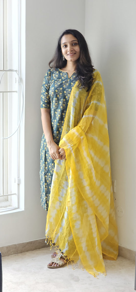 Chaaru - Sanganeri Handblock Printed Kurta with Kota Block Printed Dupatta