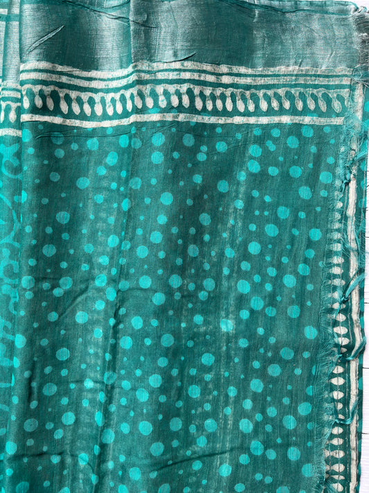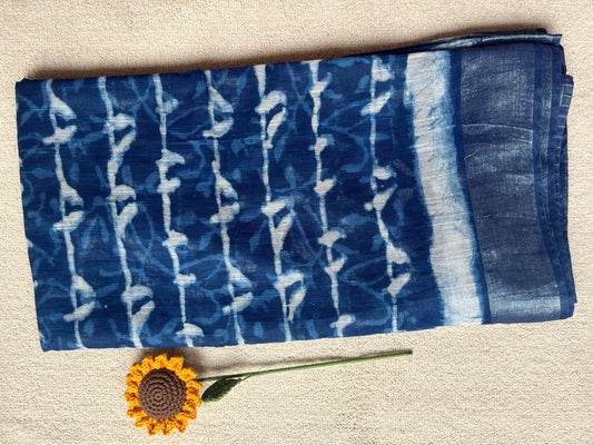 Indigo - Soft Tissue Silk Handblock Printed Saree