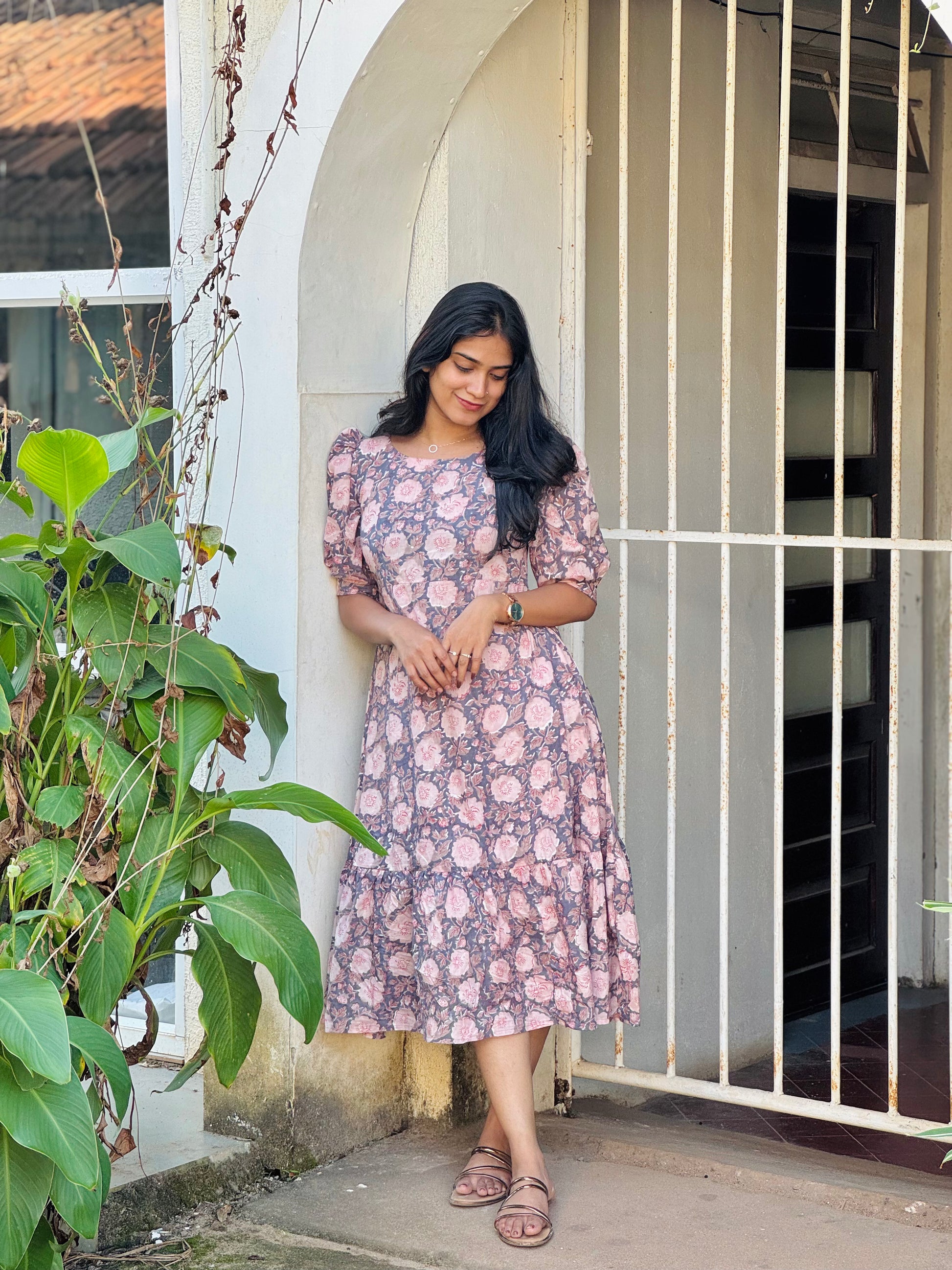 Escape into effortless elegance with this hand-block printed cotton dress, where traditional Sanganeri craftsmanship meets contemporary ease. Perfect for leisurely afternoons or casual getaways, this piece celebrates artisanal heritage without compromising on comfort. A versatile wardrobe essential that transitions seamlessly from day to evening.