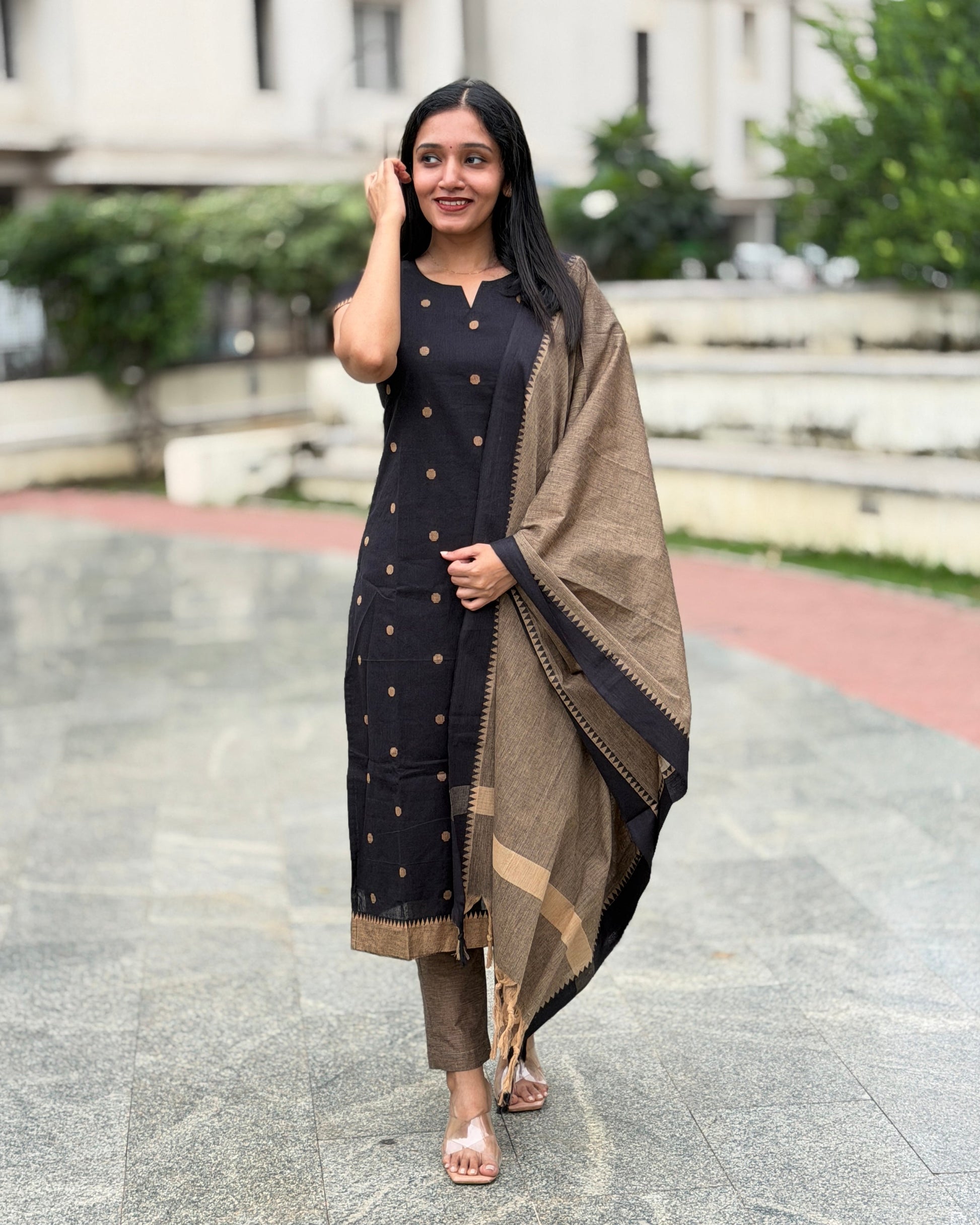 Wrap yourself in luxury with our Kaala Handloom Kurta Set. Crafted from pure cotton, this classy and elegant set is designed to elevate your style. Experience the finest quality and exclusive design with our handloom kurta set.