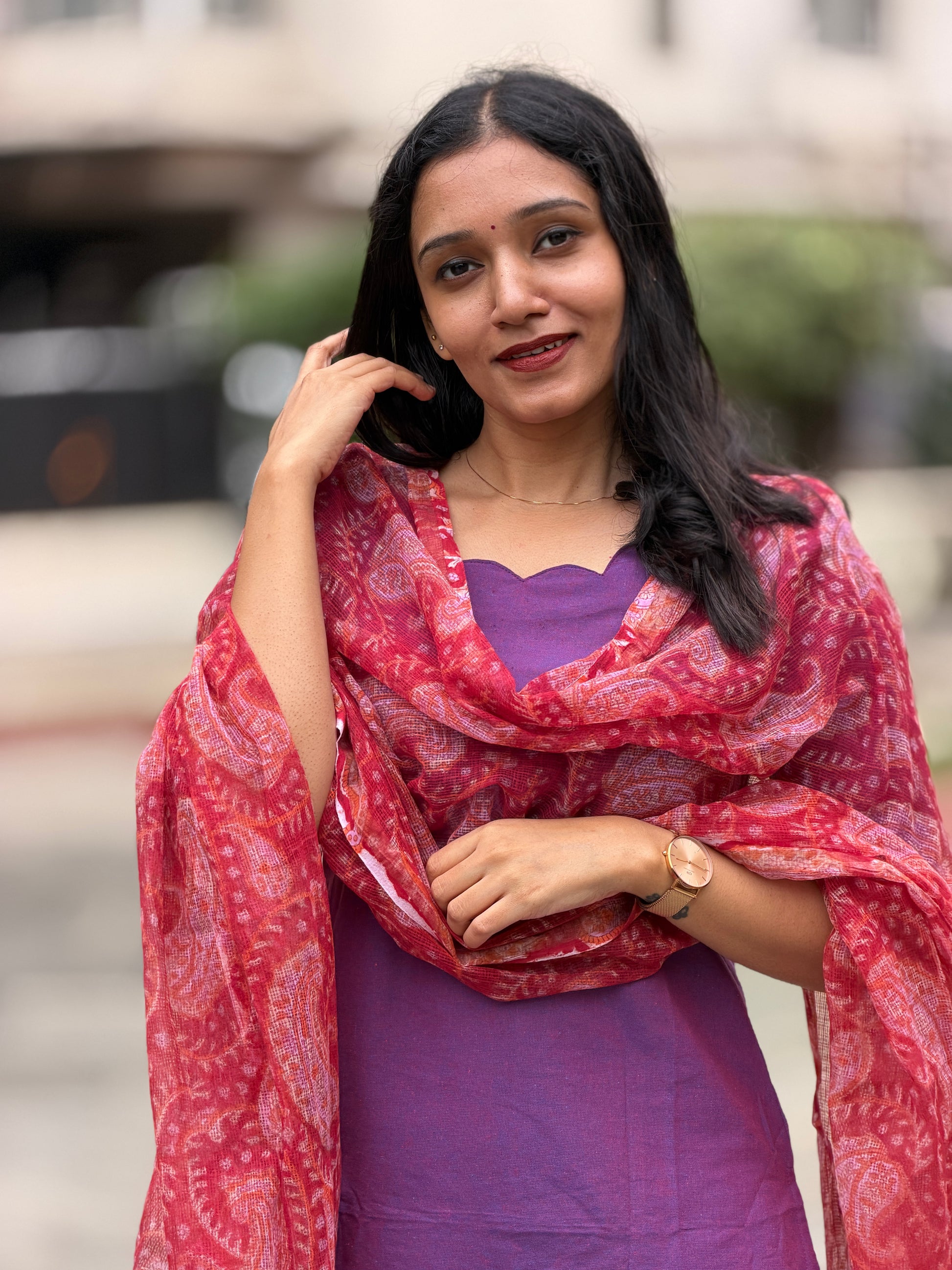 Elevate your ensemble with the Magizhmathi - Handloom Kurta & Kota Block-Print Dupatta Set.