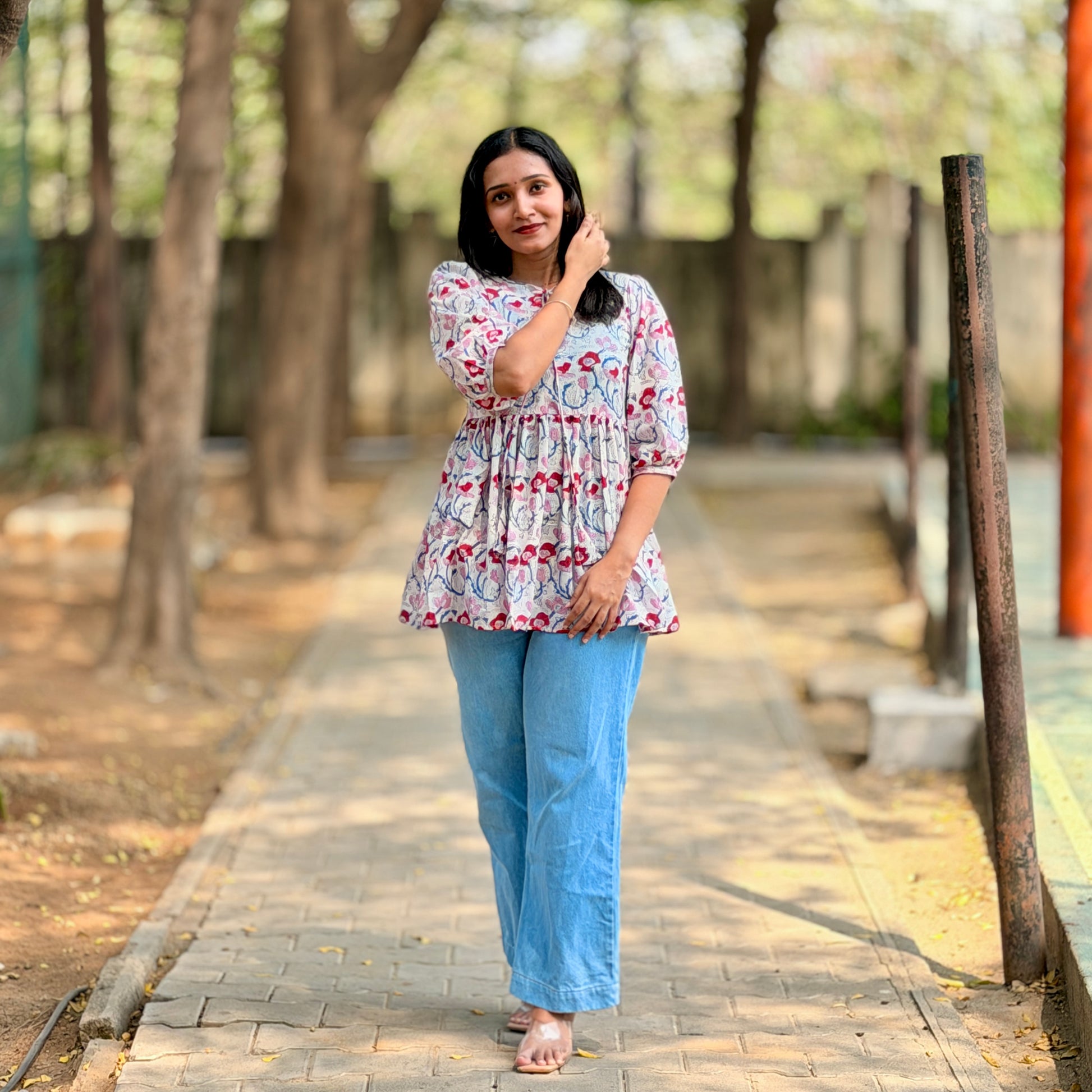 Maira - Sanganeri Handblock Printed Peplum Kurta
