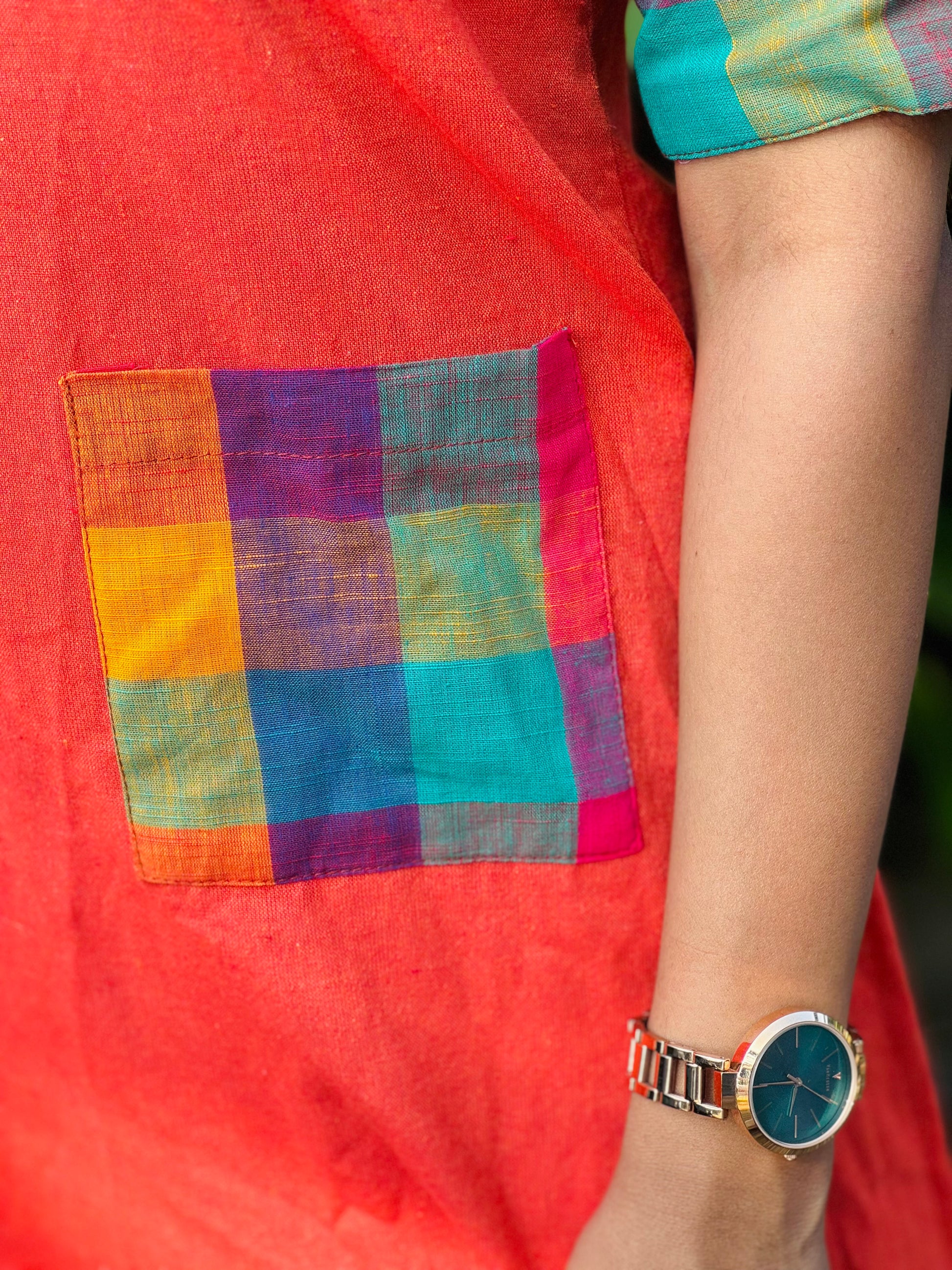 Experience the perfect blend of tradition and modernity with our Midas Touch dress. The vibrant orange color and madras check contrast add a contemporary twist to this traditional silhouette. Elevate your style and stand out in any event with this unique and chic dress.