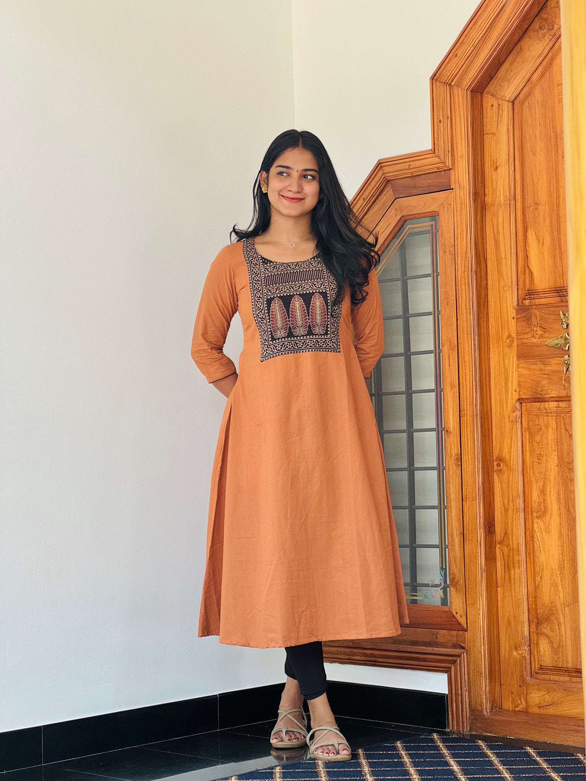 Embrace timeless elegance with the Mihira Ajrakh Fusion A-line Kurta. This sophisticated piece blends traditional ajrakh block-print patterns with contemporary silhouette, creating a versatile wardrobe essential.