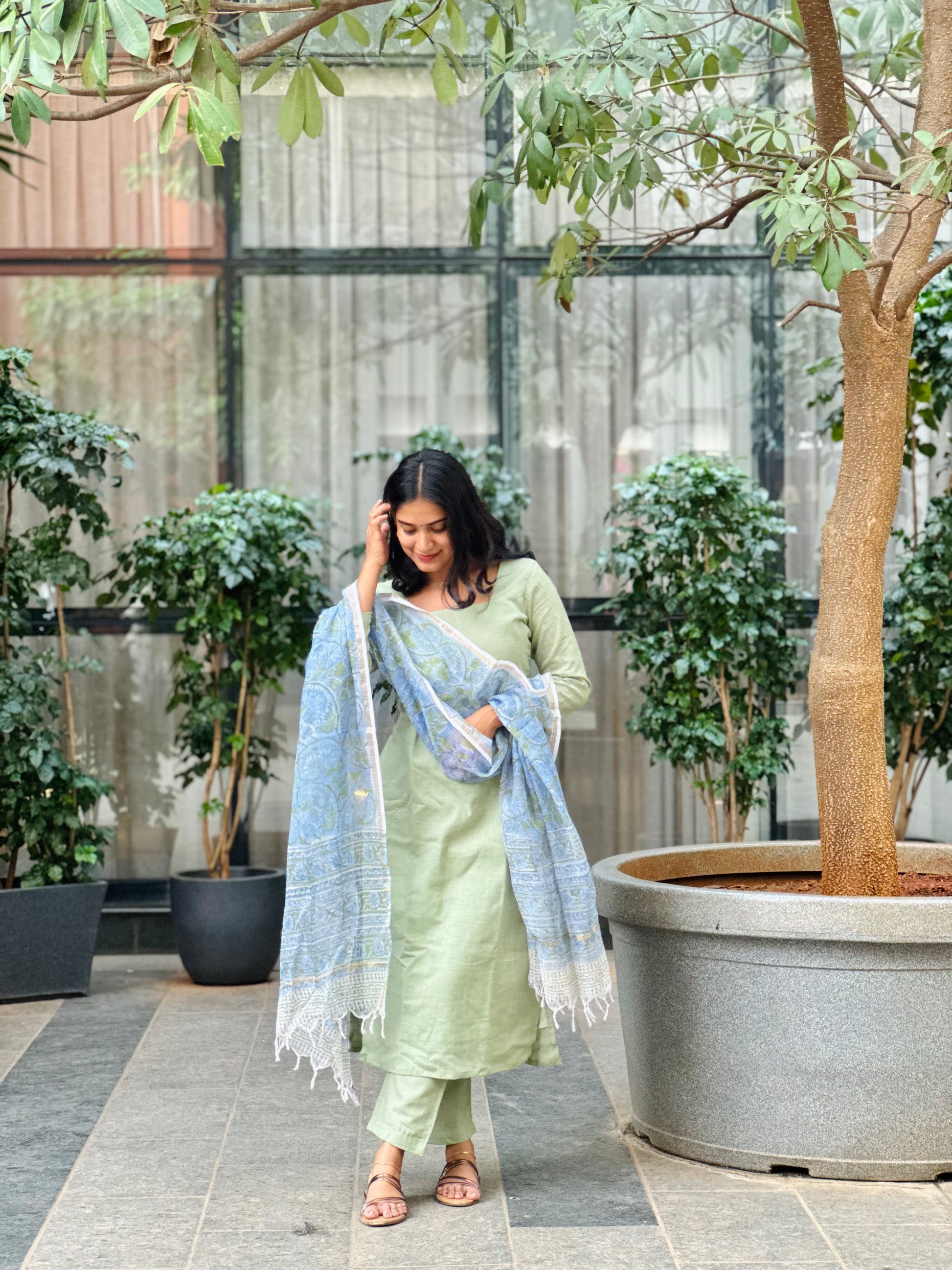 Elevate your wardrobe with the Sindhuja Slub Cotton Kurta and Sanganeri Handblock Printed Dupatta Set. This elegant pastel green ensemble offers both style and comfort, making it perfect for any occasion. The breathable fabric ensures you stay cool, while the unique handblock print adds a touch of artistry to your look.