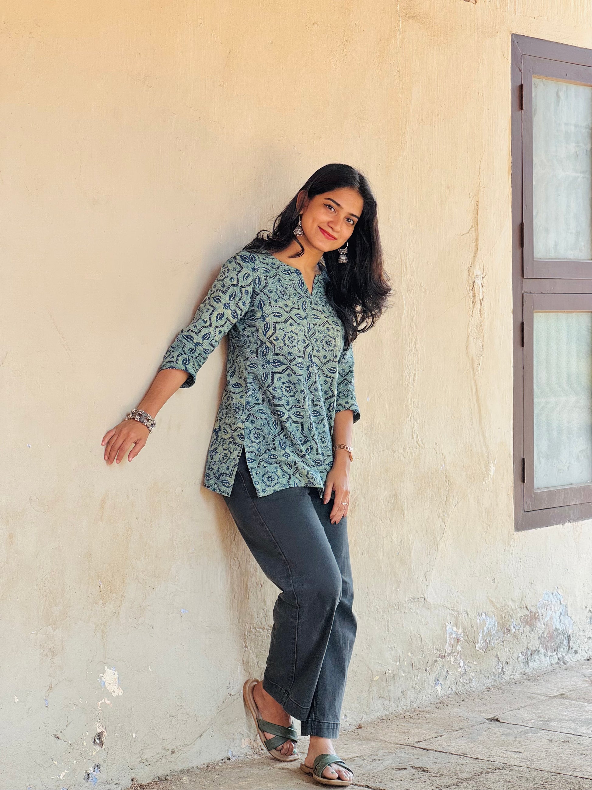 Soma - Teal Barmer Ajrakh Short Kurta