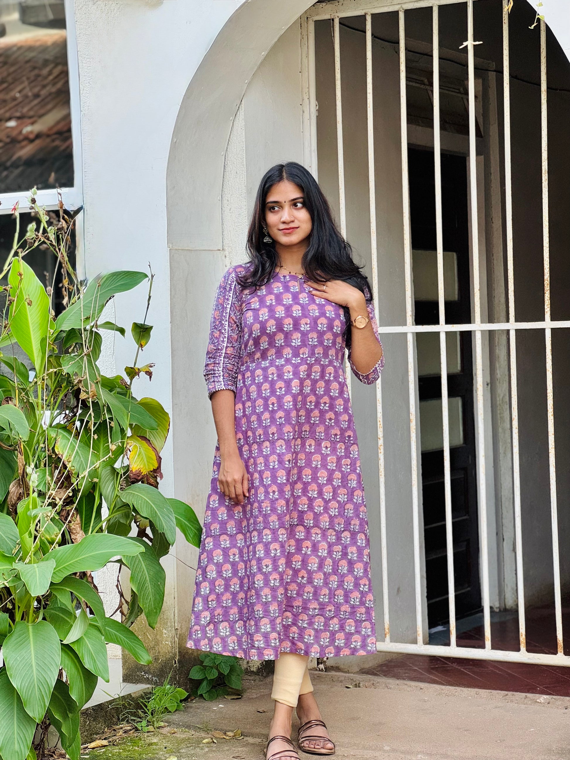 Vianna - Handblock Printed Sanganeri A Line Kurta